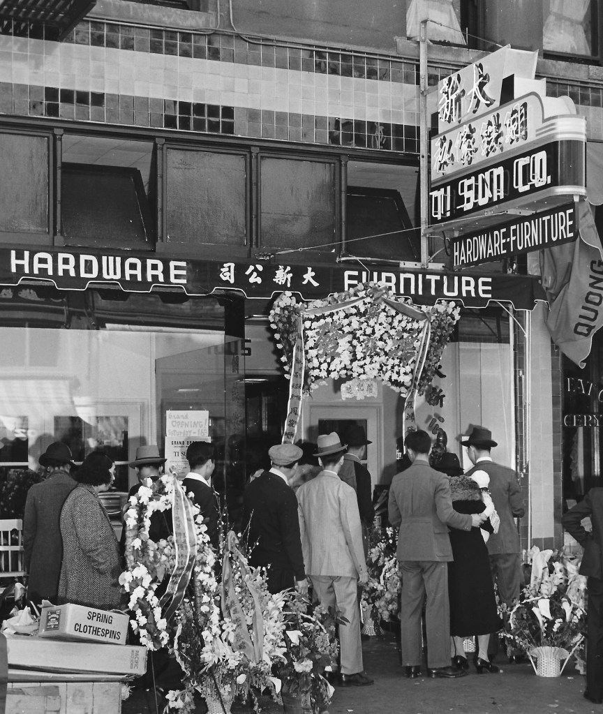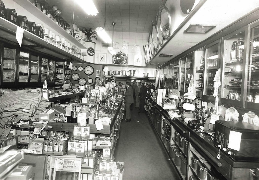 On March 16, 1940, H.K. became co-owner of the Ti Sun Hardware Company, where he worked for the next thirty years. An article in Hardware Age, July 1942, wrote glowingly of H.K.’s new endeavor. “H.K. Wong, in age and spirit a member of the young Chinese colony welded to the American tradition, quit his job as a teller in the local bank. With four other principal partners, some of them older, G.W. Wong, D.H. Po, Der Sang, and B.H. Chan, he has formed the Ti Sun Company to deal in hardware, housewares, and furniture.”