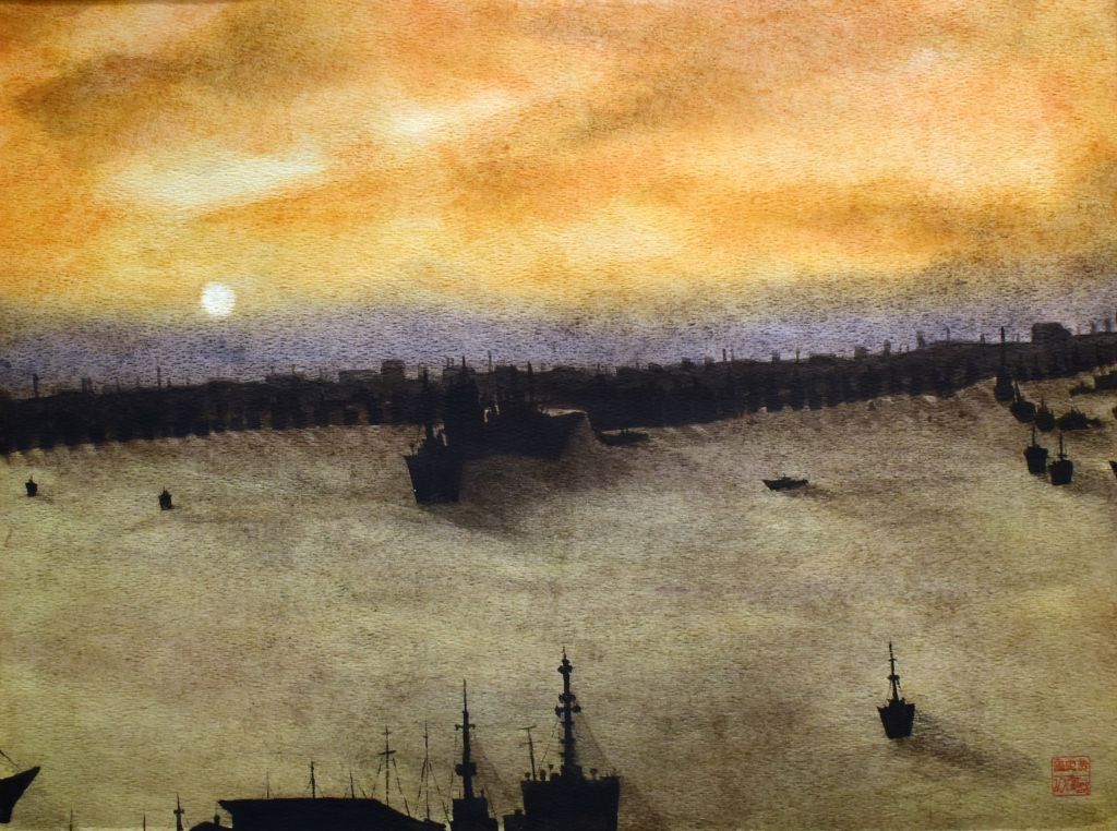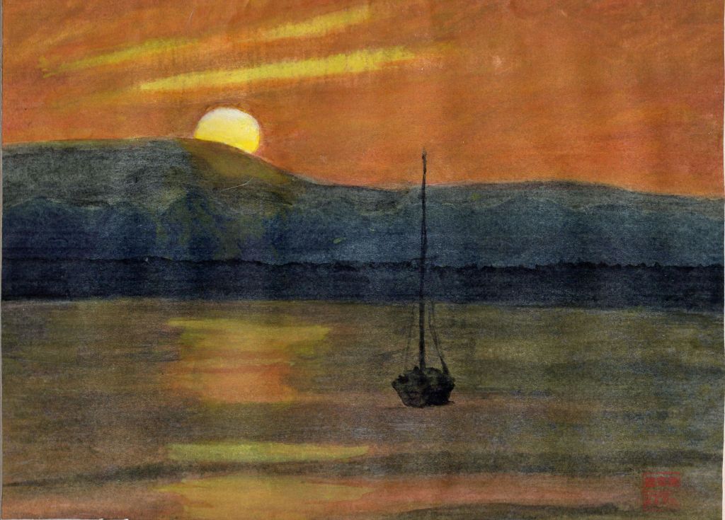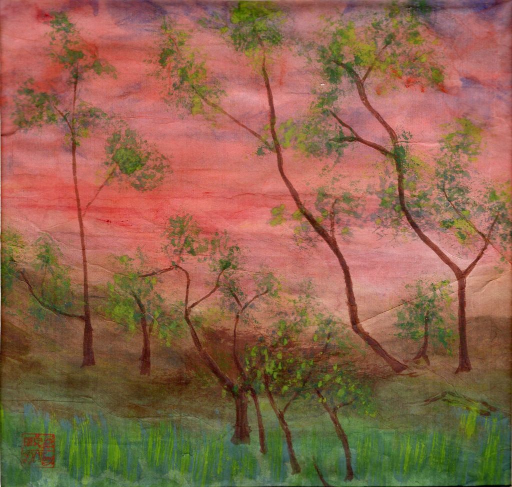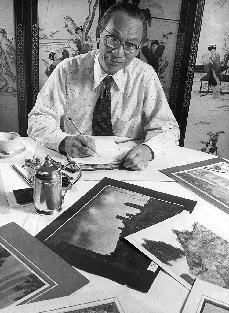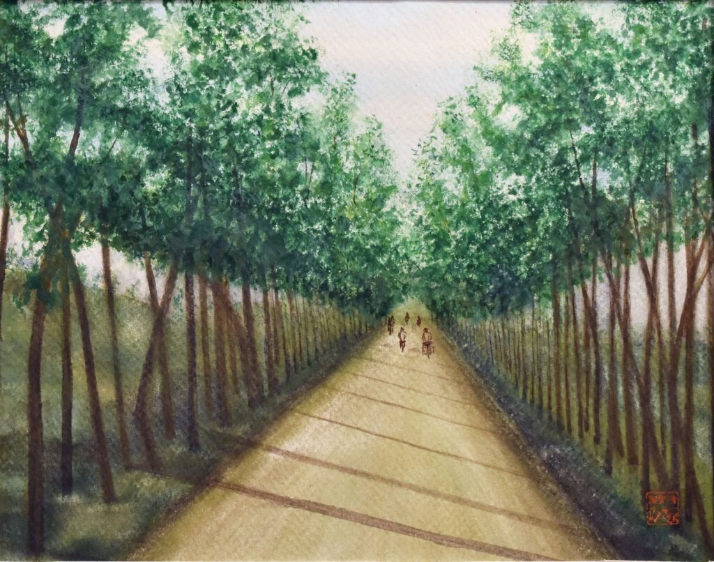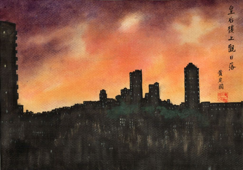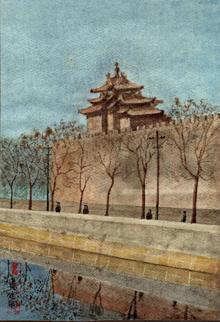 H.K.’s interest in watercolor painting started during our family’s 33-day trip through mainland China in 1975. While visiting the Kweilin Mountains, he became entranced with their beautiful formations. With his felt pen, he created a stack full of sketches of the scenery. My dad’s artistic talent had been evident at an early age in two pencil sketches of farmworkers he drew in grade school. He received high marks for those drawings. My dad liked to doodle on scrap paper or cardboard and make sketches or drawings with a ballpoint pen or felt marker. To get a watercolor effect, he would wet the marker or dab the drawing with water or tea.